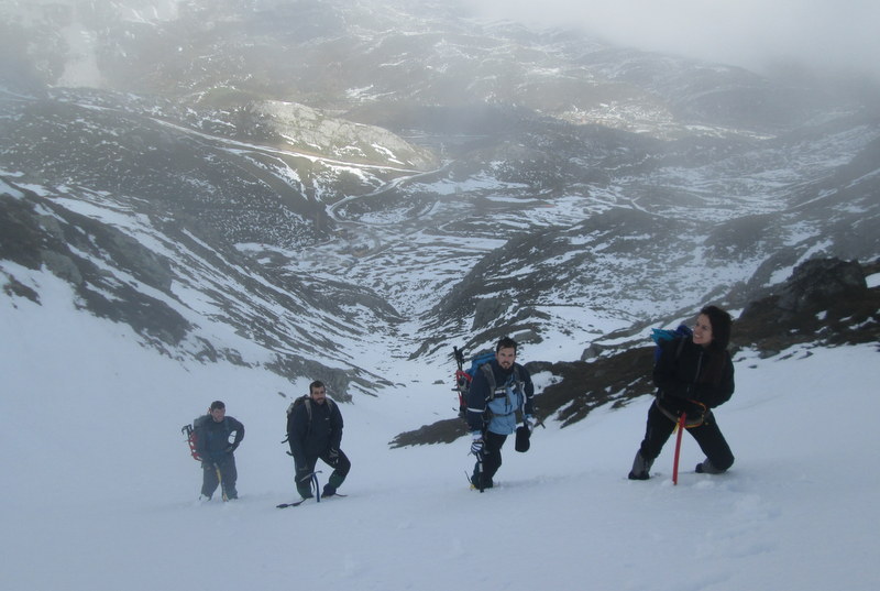 Alcanzado el collado del Tubo, seguiremos en continua progresión bordeando la falda meridional del Pico para comodamente alcanzar su cumbre. Sigue siendo terreno perfecto para afianzar todos los conocimientos adquiridos hasta el momento.